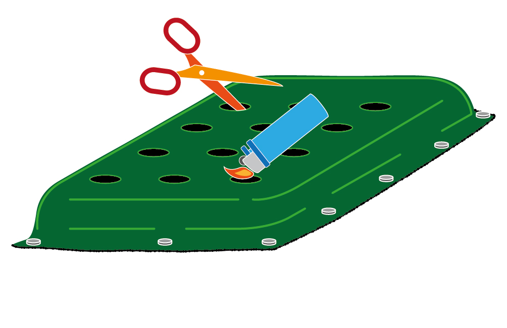 Для монтажа полотна понадобятся ножницы и крепления. При необходимости можно использовать строительный фен или горелку/зажигалку для обработки краев ткани.