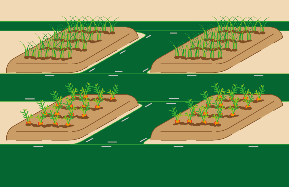 В междурядьях в открытом и зарытом грунте