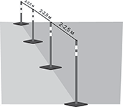 При строительстве временных мобильных ограждений в качестве опоры для сетки применяются пластиковые вехи с резиновыми или полимерпесчаными подставками. Вехи устанавливаются на расстоянии 2-2,5 м. Для продолжительного функционирования ограждения опорой для сетки будут металлические стержни или столбы, закрепленные в земле.