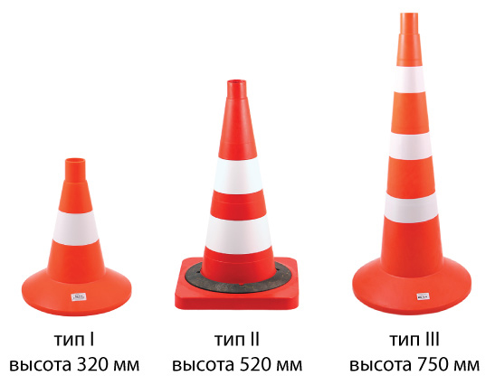 Рекомендуется использовать конусы трех типов по высоте: