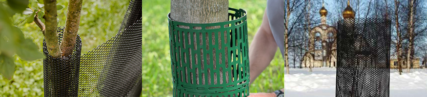Альтернативой пластиковой сетке может быть модульная система для защиты стволов. Такое пластиковое ограждение защитит стволы от повреждения грызунами, а также от триммера. Элементы укрытия собираются как в ширину, так и в высоту.
