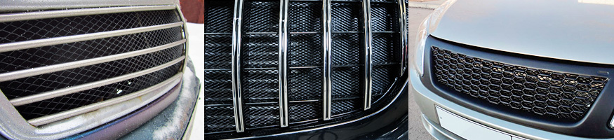 Сетки для радиатора предназначены для защиты системы охлаждения в автомобилях, а также применяются для улучшения – тюнинга – внешнего вида авто. Сетка защищает от попадания в радиатор мусора, грязи, веток, камней, крупных насекомых, сдерживает тополиный пух.