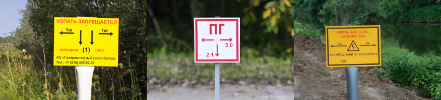 - Наглядное информирование. В случае нарушения работы сети по указателям легко определить ее местоположение. Дополнительные информационные таблички содержат данные об особенностях сети, глубине трассы, охраняемой зоне, ответственной организации.