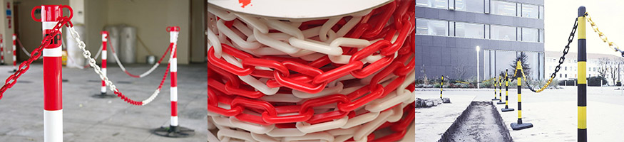 Цепь оградительная пластиковая выступает в качестве оградительного элемента на автостоянках, в процессе ремонтно-строительных, монтажных работ. Пластиковая цепь может быть временным ограждением, например при проведении различных массовых мероприятий.