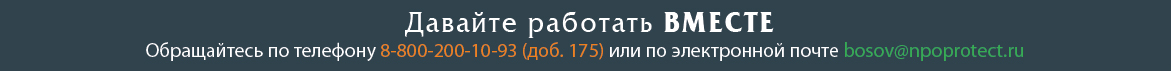 По условиям сотрудничества обращайтесь по телефону 8-800-200-10-93 (доб. 175) или по электронной почте bosov@npoprotect.ru
