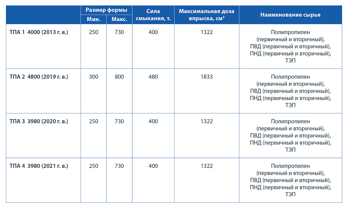 Термопластавтомат (ТПА) - инжекционная литьевая машина для изготовления деталей из термопластов методом литья под давлением: сырье путем нагрева приводится в жидкое агрегатное состояние и под давлением подается в пресс-форму. Внутренние контуры пресс-формы точно повторяют форму будущего изделия, поэтому полная заливка оснастки полимером означает получение геометрически точных деталей. Такая технология идеально соответствует массовому производству изделий сложной формы, важным требованием к которым является точное соответствие размерам.