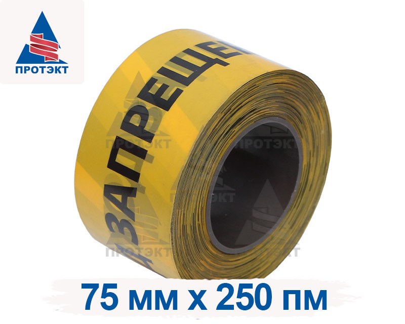 Характеристики оградительной ленты с логотипом желто-черная Проход запрещен ЛО-250/75: