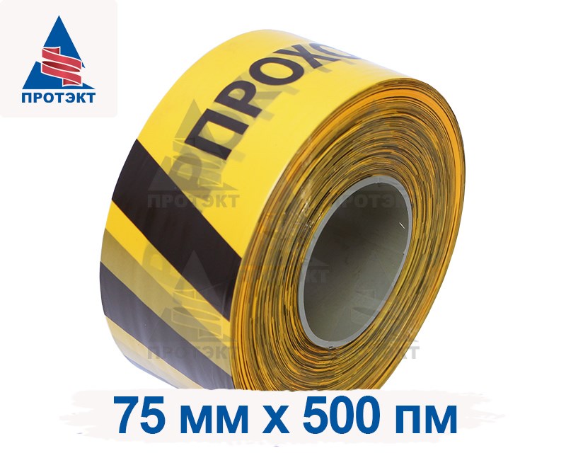 Характеристики оградительной ленты с логотипом желто-черная Проход запрещен ЛО-500/75: