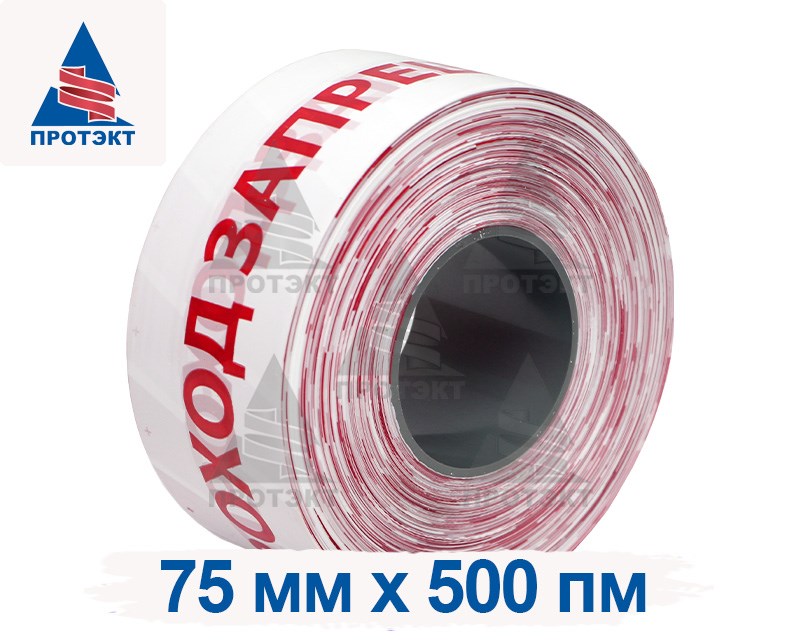 Оградительная лента бело красная с логотипом Проход запрещен ЛО-500/75