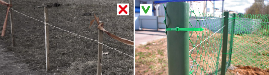 Пластиковые стяжки различаются по длине, толщине и максимальной нагрузке, которую они способны выдержать. Для подвязки растений лучше всего использовать более широкие хомуты, чтобы не повредить стебель. Если необходимо закрепить сетку на опорах, можно отдать предпочтение тонким стяжкам. Они не только будут надежно удерживать ограду, но и не деформируются под воздействием низких температур, дождя или ветра.