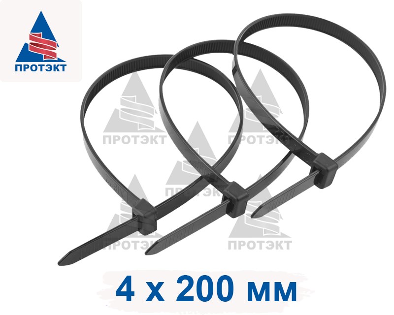 Хомут пластиковый, размер 4х200 мм, черный