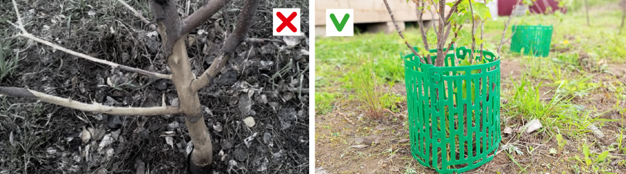 Защитное ограждение прикрывает ствол дерева во время скашивания травы, защищает штамбы от поедания их зайцами и мышами. Также можно сооружать поддержку для раскидистых растений.