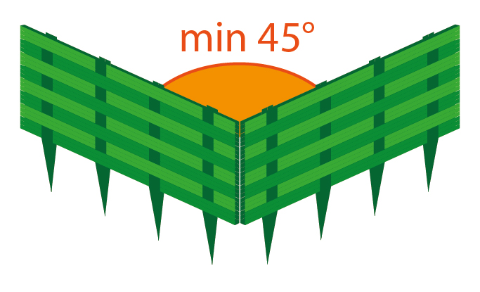 Возможна установка секций под разным углом. Минимальный внутренний угол сбора 45°. |
