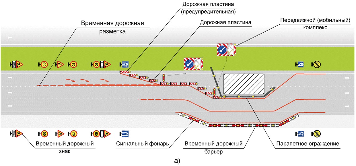 - вместо дорожной пластины «Солдатик» при выполнении долгосрочных работ, на автомагистралях и скоростных дорогах при производстве стационарных краткосрочных работ