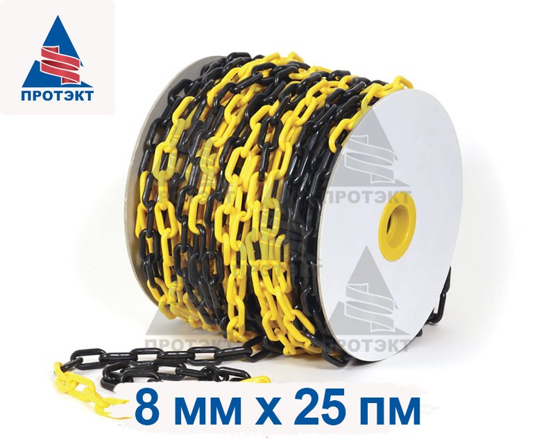 Цепь оградительная сигнальная пластиковая желто-черная 8 мм * 25 п.м.