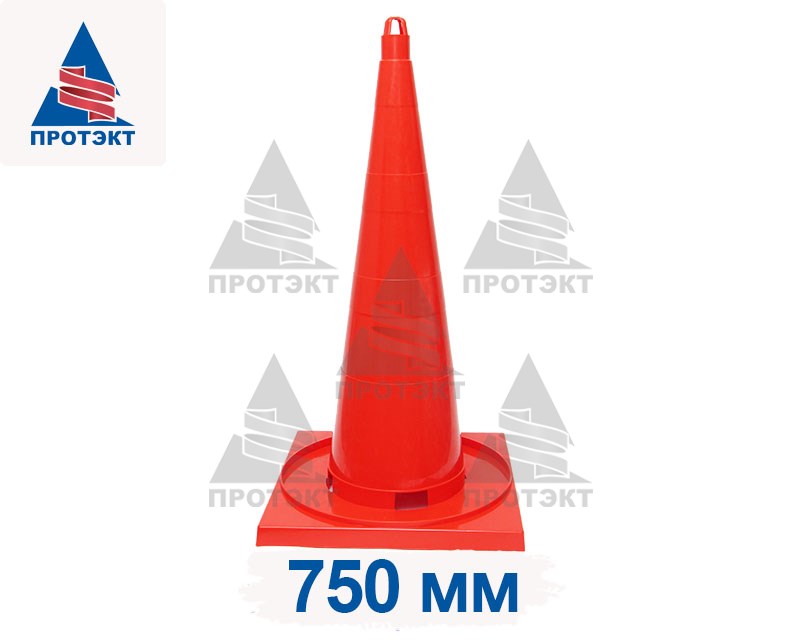 Конус цельнолитой с квадратным основанием устойчивый к опрокидыванию, прочный при падении, а также при отрицательной температуре. Возможна установка дополнительного оборудования (сигнальные фонари, пластиковые цепи).