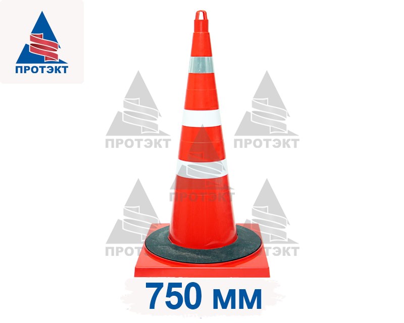 Конус цельнолитой с квадратным основанием устойчивый к опрокидыванию, прочный при падении, а также при отрицательной температуре. Возможна установка дополнительного оборудования (сигнальные фонари, пластиковые цепи).