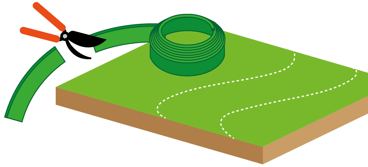 Для легкой нарезки и формирования изгибов перед монтажом оставьте бордюр полежать немного на солнце. Лента станет мягче для нарезки. |