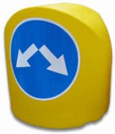 На пластиковый дорожный разделительный буфер 920х1200х1250 устанавливают специальные световозвращающие маски требуемого дорожного знака.