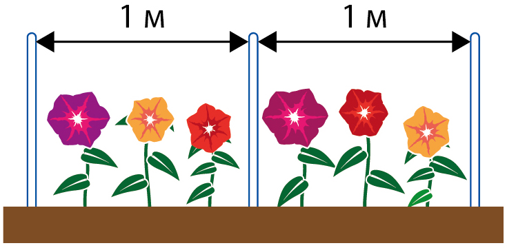 Установить опоры для ограждения на расстоянии не менее 1 м. Опорой могут быть деревянные, металлические или пластиковые колышки. Высота колышков подбирается с учетом того, что они на 1/3 должны быть углублены в землю. |