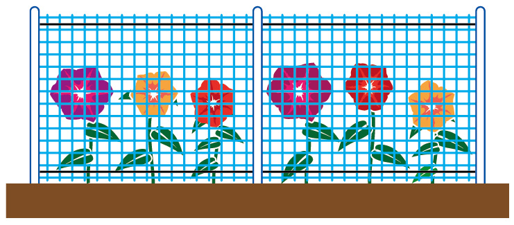 Для ограждения палисадника или цветника понадобится пластиковая решетка, столбики и инструменты для их установки, садовый секатор, пластиковые хомуты, возможно проволока.