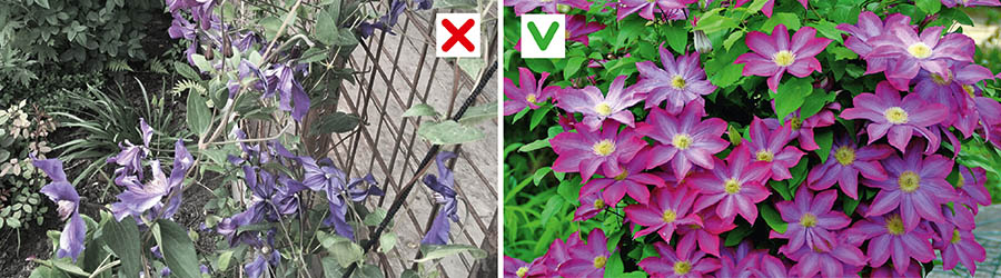 В выращивании таких цветов как клематисы есть несколько очень важных моментов: корни растений должны находиться в тени, а вот сам куст нуждается в постоянном освещении солнцем. Не менее важно правильное расположение цветов – они должны выращиваться вертикально. Решение есть-сетка для клематиса!