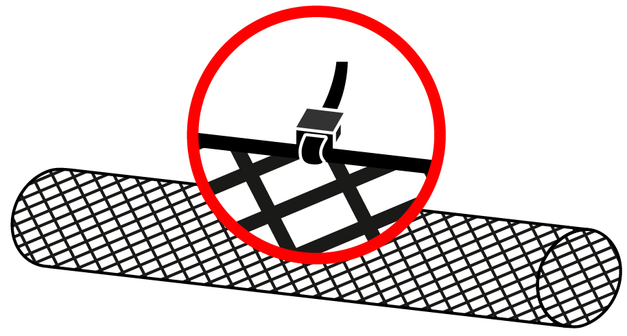 Сверните сетку. Диаметр свернутого рулона должен быть равным диаметру желоба или чуть больше. Только в этом случае сетка будет плотно прилегать к желобу, и листва с мелким мусором не будут попадать между сеткой и желобом. При необходимости соедините края хомутами или веревкой. |