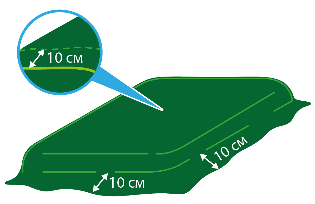 Края должны выходить за пределы покрываемой области не менее, чем на 10 см.