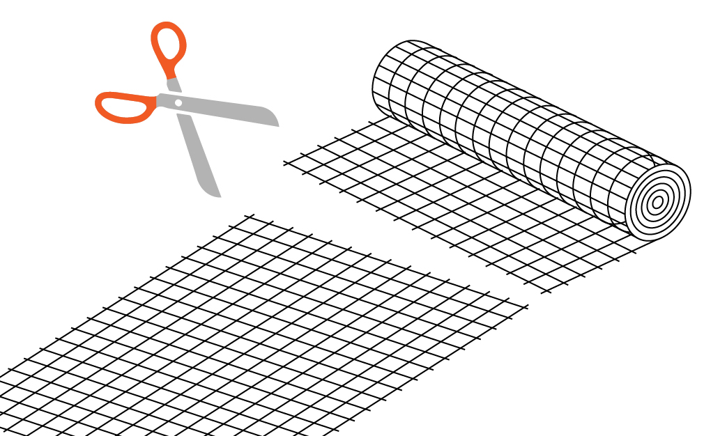 Уложить сетку, избегая складок и заломов, вдавить шпателем во влажный раствор. Отдельные полотна сетки укладывать друг на друга с нахлестом 10 см. Дождаться полного затвердевания поверхности. |
